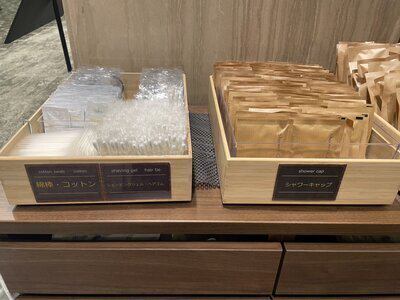 当館ではアメニティ類を「アメニティバイキング」という形でお客様ご自身でお選びいただいております^^