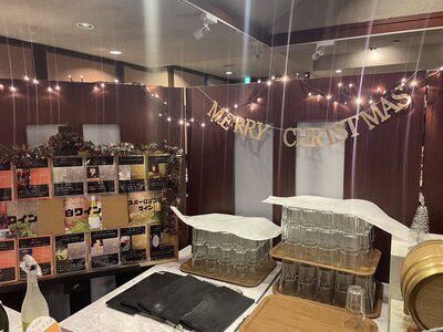 カウンター内、飲み放題コーナーとクリスマス仕様に(*^^*)