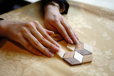 寄木細工とは、色や木目の異なる木を組み合わせて模様を作り上げる箱根ならではの工芸品。