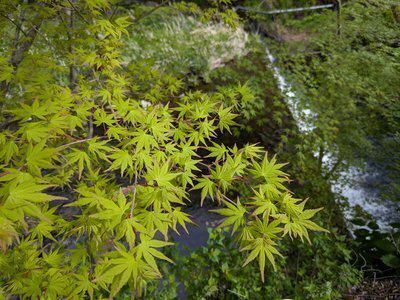 当館の周りにも、美しく鮮やかな楓の木々が広がり、この時期ならではの瑞々しい景色をお楽しみいただけます。今回は、須雲川をバックに写真を撮ってみました。せせらぎの音とともに広がる新緑の風景は、まるで自然が描いた一枚の絵のようです。