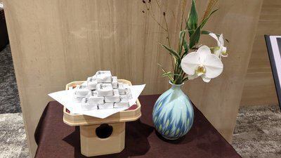 一年のうちで最も美しいとされるこの月を愛でる時期に合わせ、ロビーにて当館オリジナルの「南風荘饅頭」をお月見団子に見立ててお飾りしております。