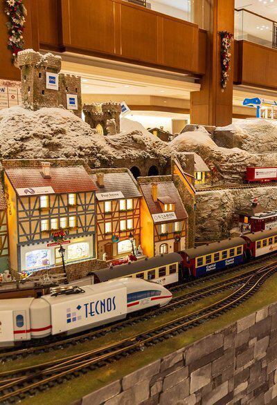 →全長11mの大規模な鉄道ジオラマが、雪景色や街並みを再現して館内を走ります。